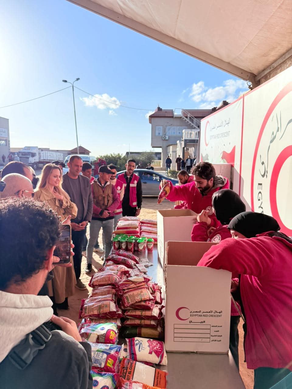 استقبل المركز اللوجيستي للهلال الأحمر المصري بمدينة العريش النجمة العالمية أنجلينا جولي، حيث اطلعت على دور الآلية الوطنية لتنسيق المساعدات الإنسانية التي يقودها الهلال الأحمر المصري، وآليات إدارة وتنسيق تدفق المساعدات الإنسانية.
