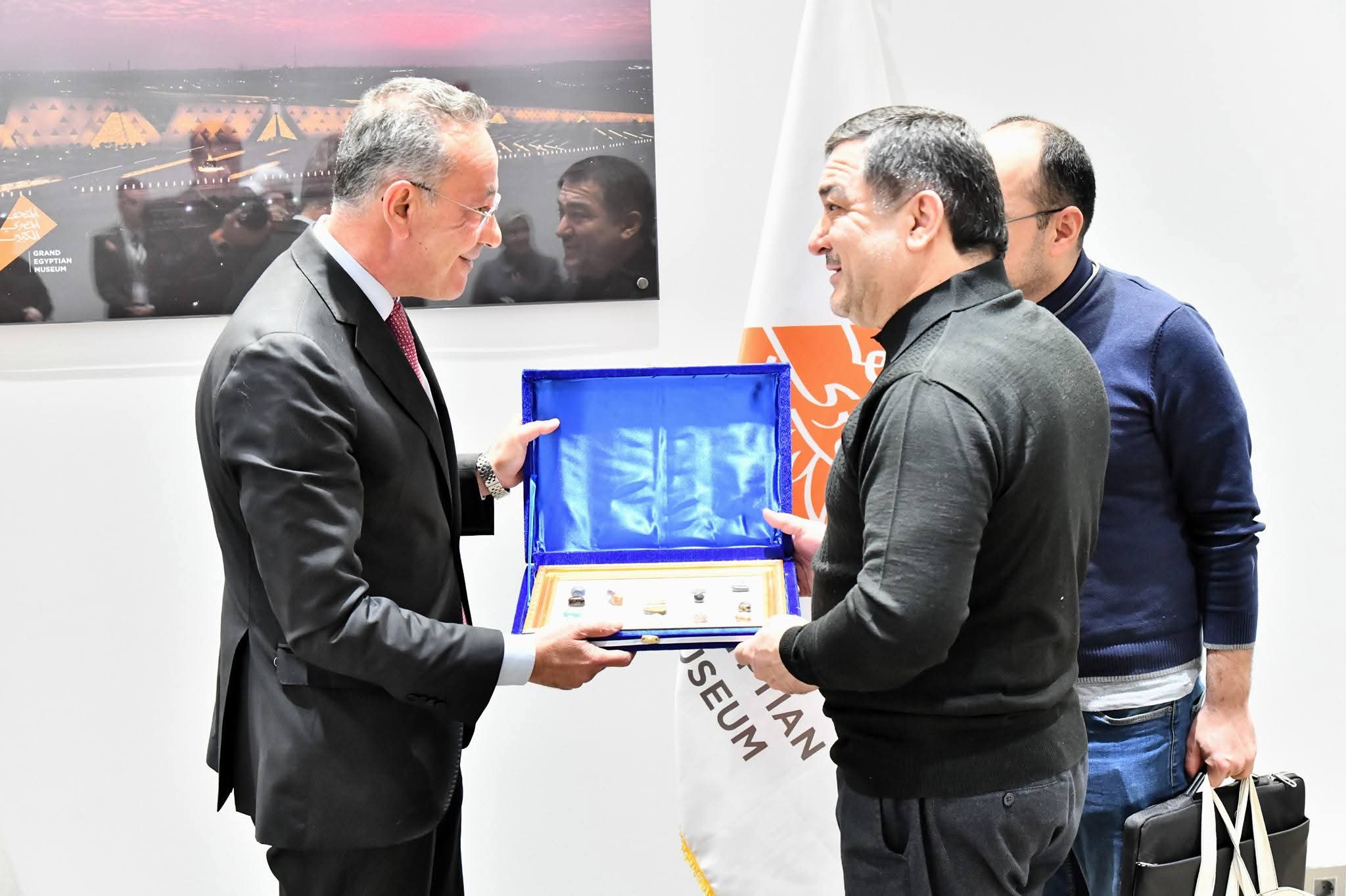 وكان في استقبالهما الدكتور أحمد غنيم، الرئيس التنفيذي لهيئة المتحف المصري الكبير، الذي رحب بالضيوف وقدم لهم عرضًا حول رؤية المتحف ورسالته وأبرز كنوزه الأثرية، كما أهداهما تذكارات من المتحف.